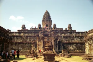 Baphoun est un temple montagneux dédié à Shiva, qui a été restauré après des siècles d'abandon. Il est remarquable par sa taille imposante et son architecture complexe.